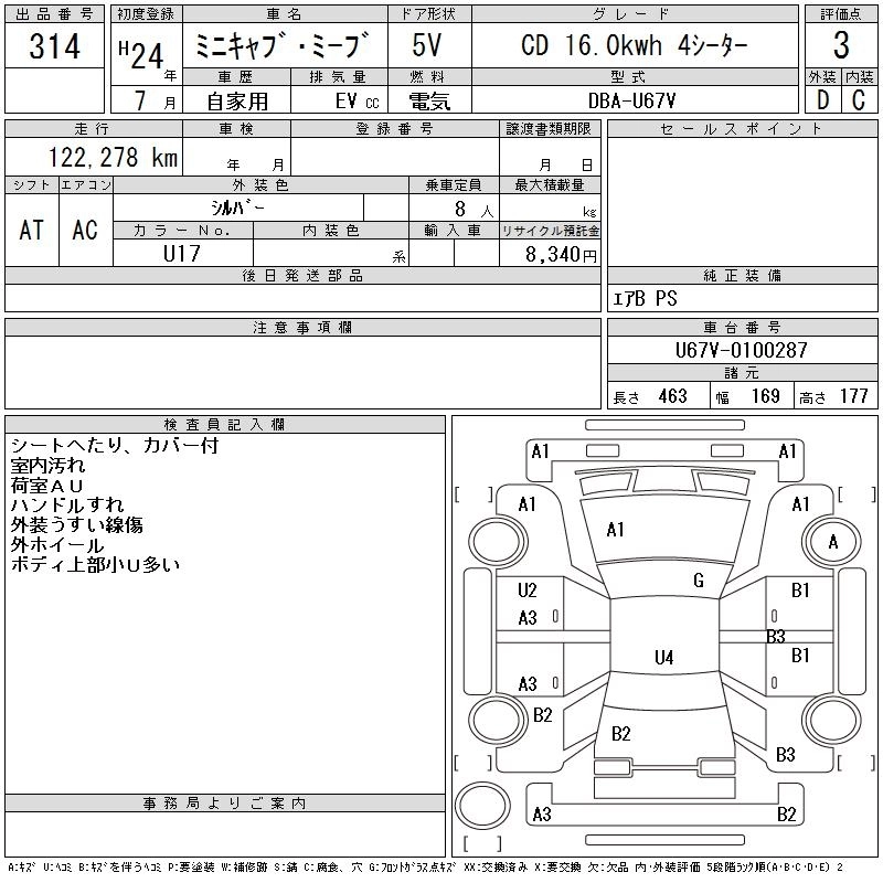 MITSUBISHI MINICAB MIEV 2012 г., лот № 314