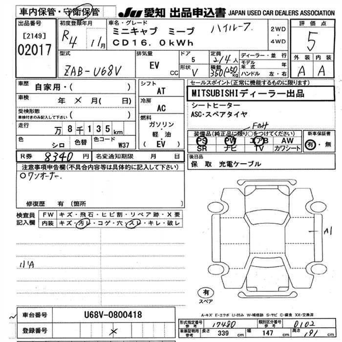 Статус выставлен на аукцион Лот 2017 Аукцион JU Aichi Дата аукциона 12.03.2026