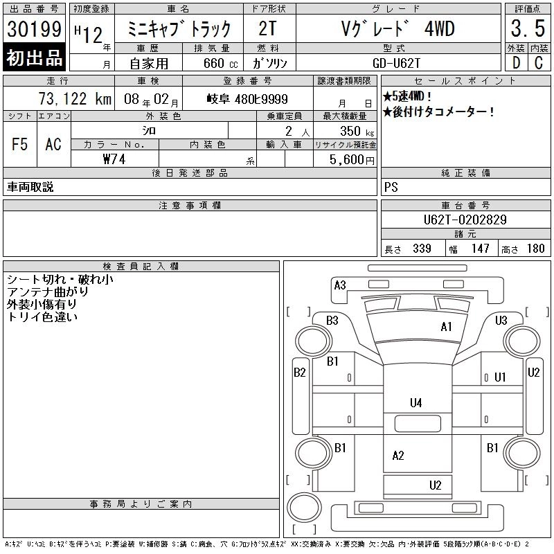 Год выпуска2000 Пробег 73 000 км КузовU62T КомплектацияV GRADE 4WD