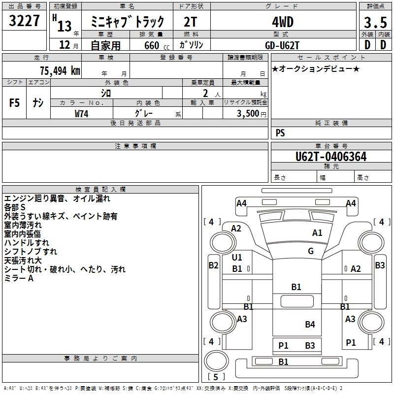 Год выпуска2001 Пробег 75 000 км КузовU62T Комплектация4WD