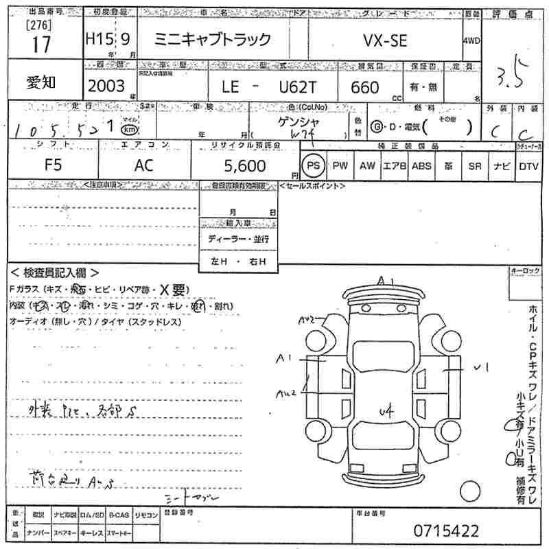 Статус продан Лот 17 Аукцион MIRIVE Aichi Дата аукциона 30.01.2026