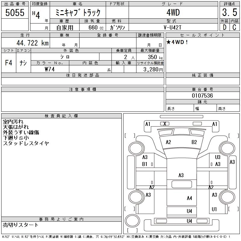 Год выпуска1992 Пробег 45 000 км КузовU42T Комплектация4WD