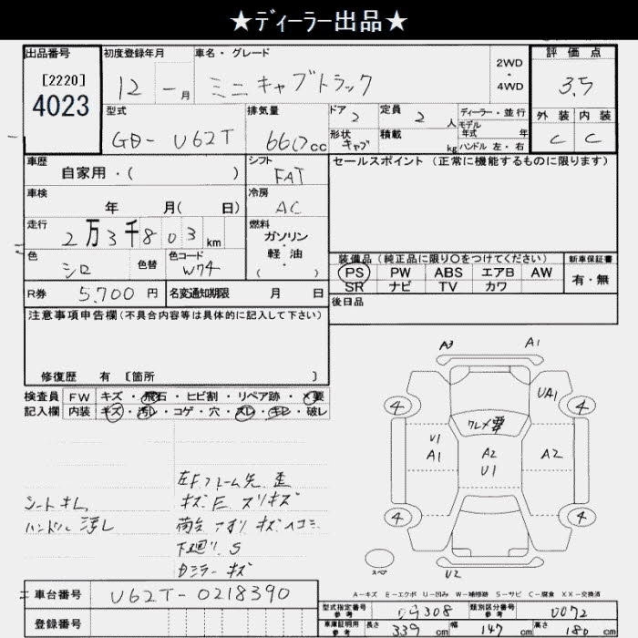 Статус выставлен на аукцион Лот 4023 Аукцион JU Saitama Дата аукциона 10.03.2026