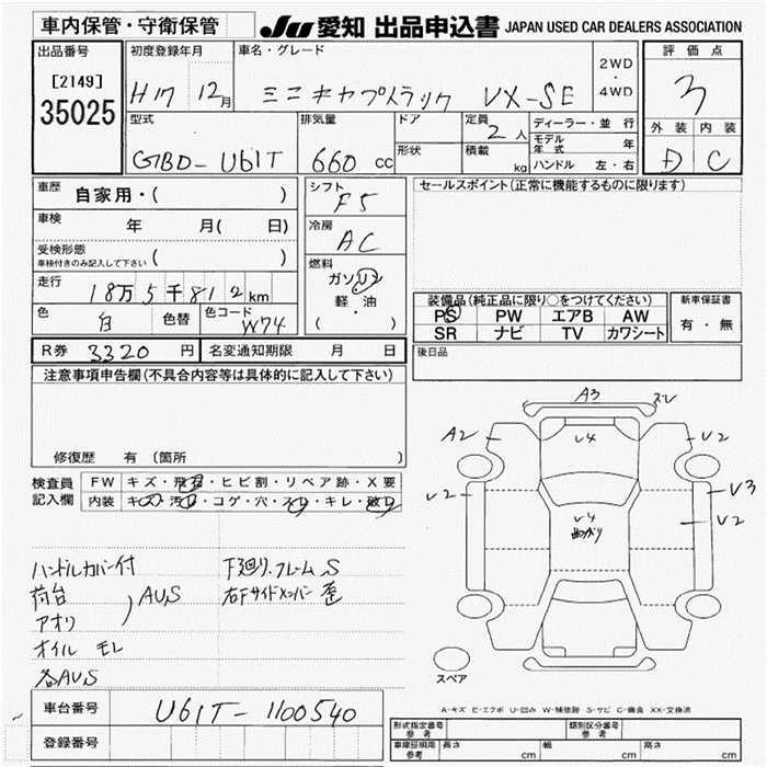 Статус выставлен на аукцион Лот 35025 Аукцион JU Aichi Дата аукциона 12.03.2026
