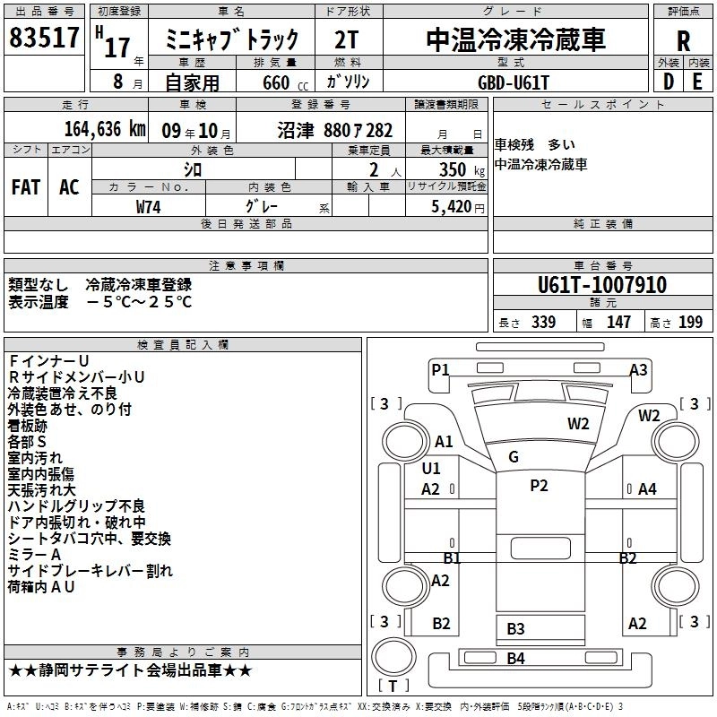 165 000 км КузовU61T Комплектация MIDDLE TEMPERATURE REFRIGERATOR CHILLING CAR