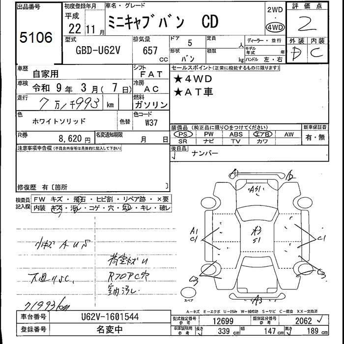 MITSUBISHI MINICAB 2010 г., лот № 5106