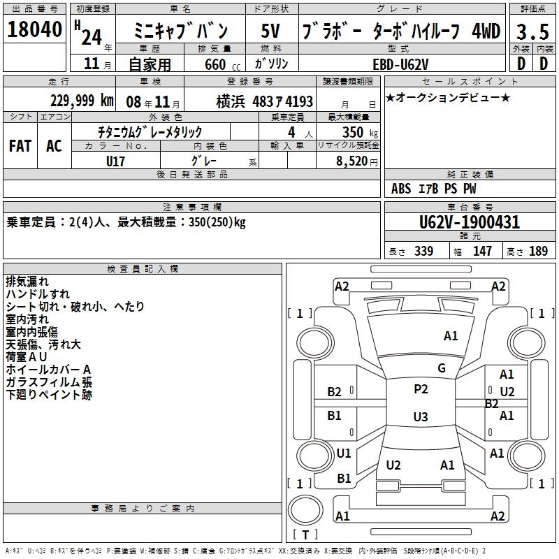 MITSUBISHI MINICAB 2012 г., лот № 18040