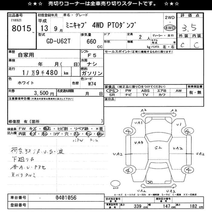 Год выпуска2001 Пробег 119 000 км КузовU62T Комплектация4WD PTO DUMP