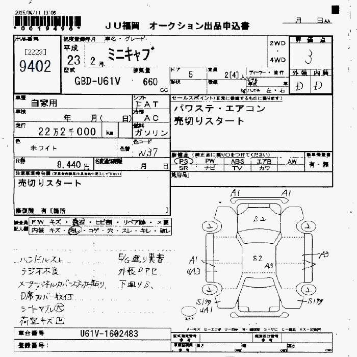Статус не продан Лот 9402 Аукцион JU Fukuoka Дата аукциона 14.11.2025