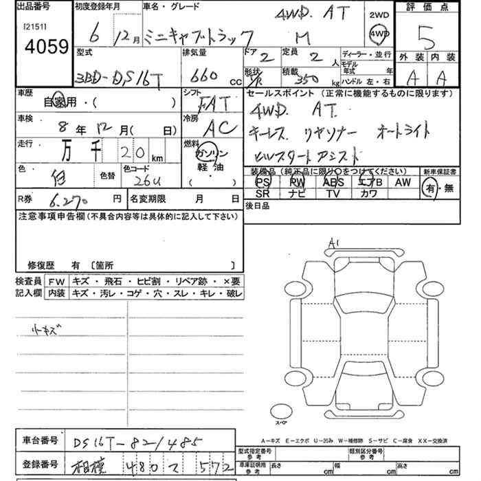 Объем660 сс Трансмиссия Автомат Привод 4WD Оценка5