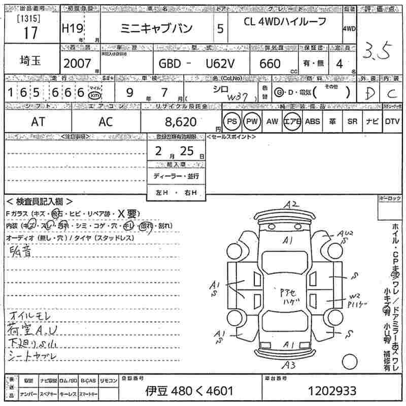 Год выпуска2007 Пробег 166 000 км КузовU62V КомплектацияCL 4WD HIGH ROOF