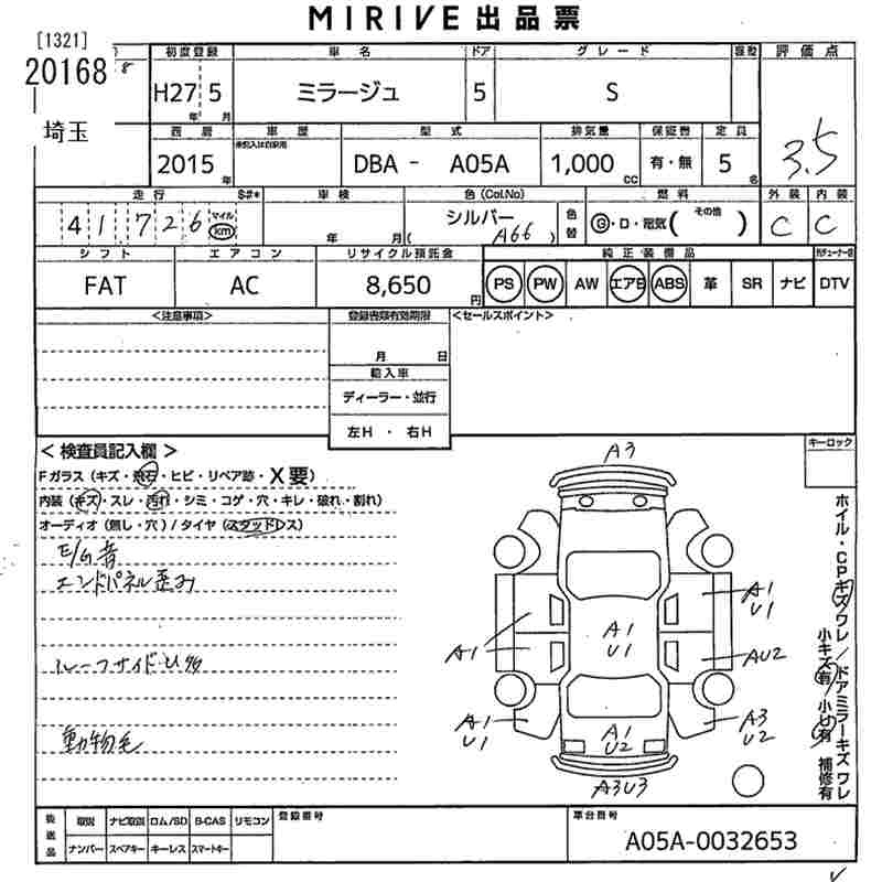 Статус выставлен на аукцион Лот 20168 Аукцион MIRIVE Saitama Дата аукциона 11.03.2026