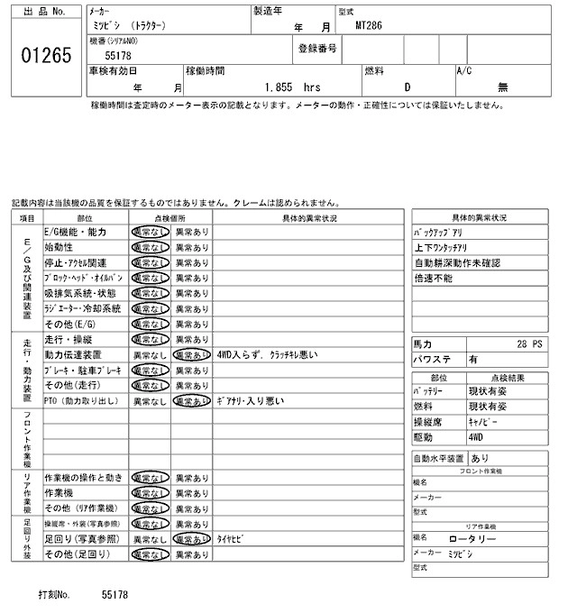 Статус выставлен на аукцион Лот 1265 Аукцион ARAI Kenki Дата аукциона 21.10.2025