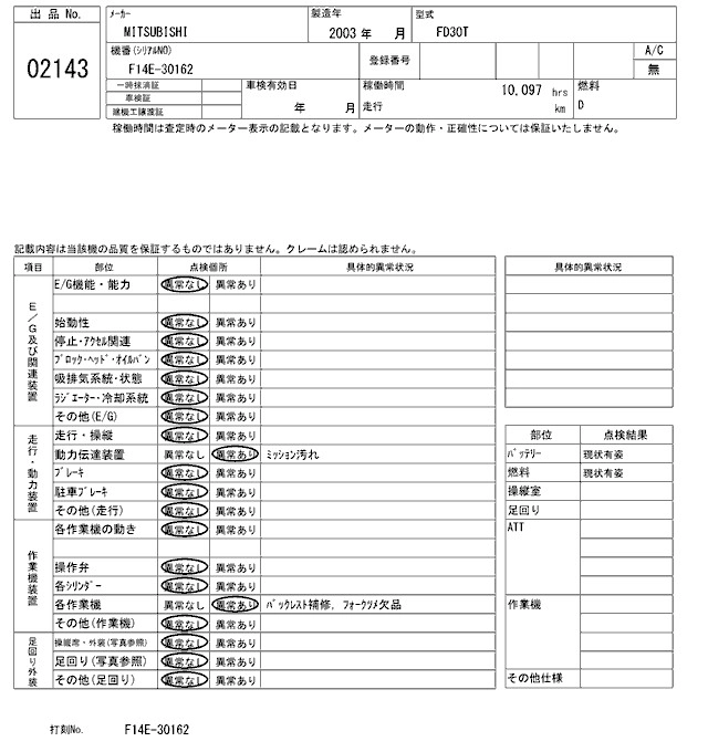 Год выпуска2003 Пробег 10 000 км КузовFD30T Комплектация FORKLIFT
