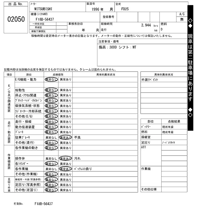 MITSUBISHI OTHER 1996 г., лот № 2050