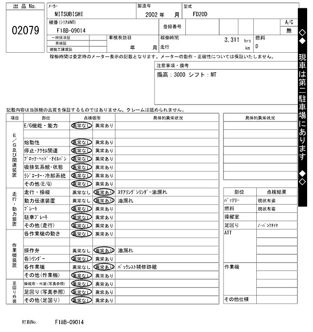 Год выпуска2002 Пробег 3 000 км КузовFD20D Комплектация FORKLIFT