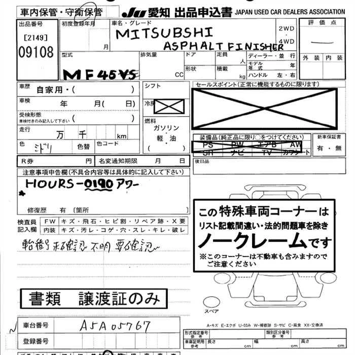Статус выставлен на аукцион Лот 9108 Аукцион JU Aichi Дата аукциона 12.03.2026