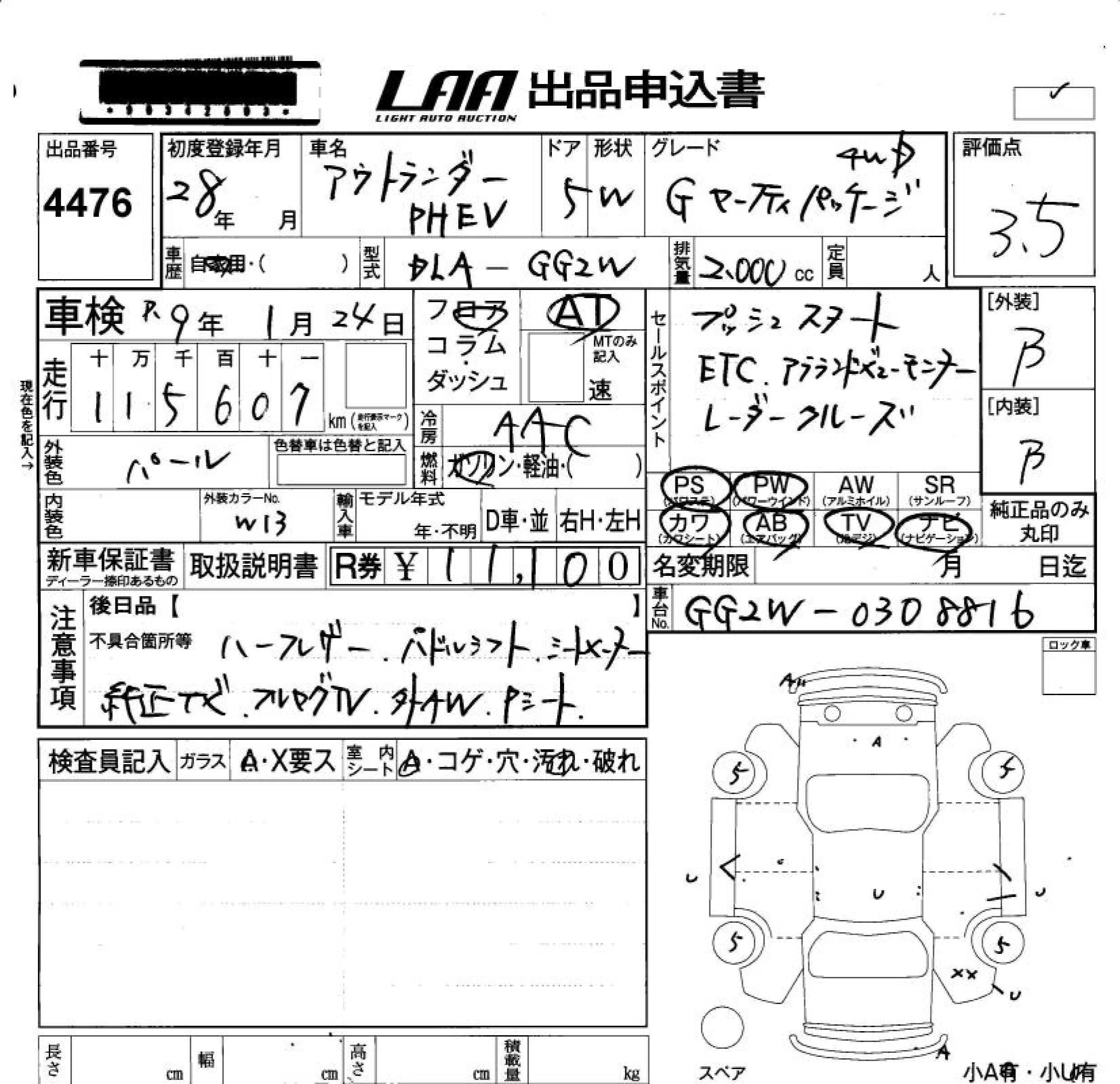 MITSUBISHI OUTLANDER PHEV 2016 г., лот № 4476