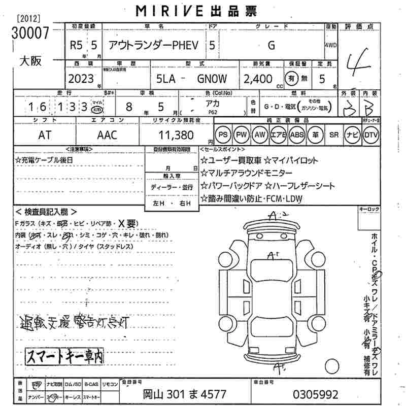 MITSUBISHI OUTLANDER PHEV 2023 г., лот № 30007