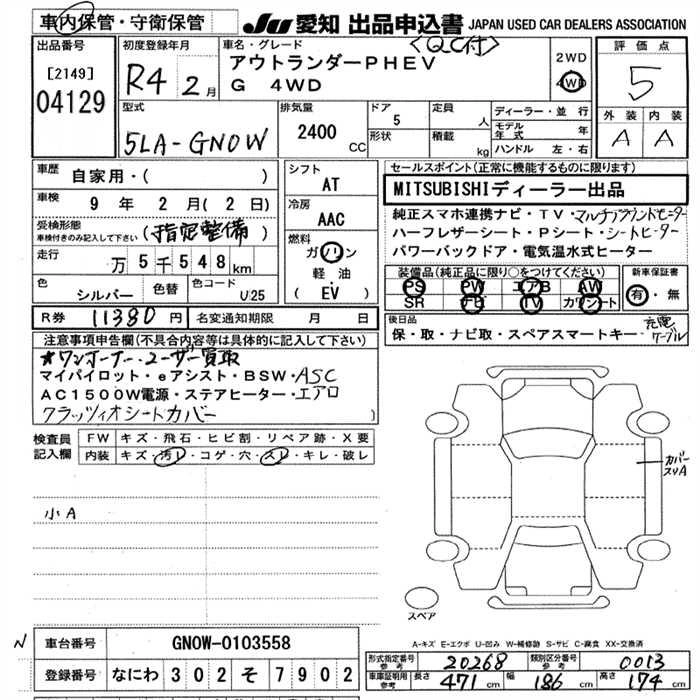 MITSUBISHI OUTLANDER PHEV 2022 г., лот № 4129