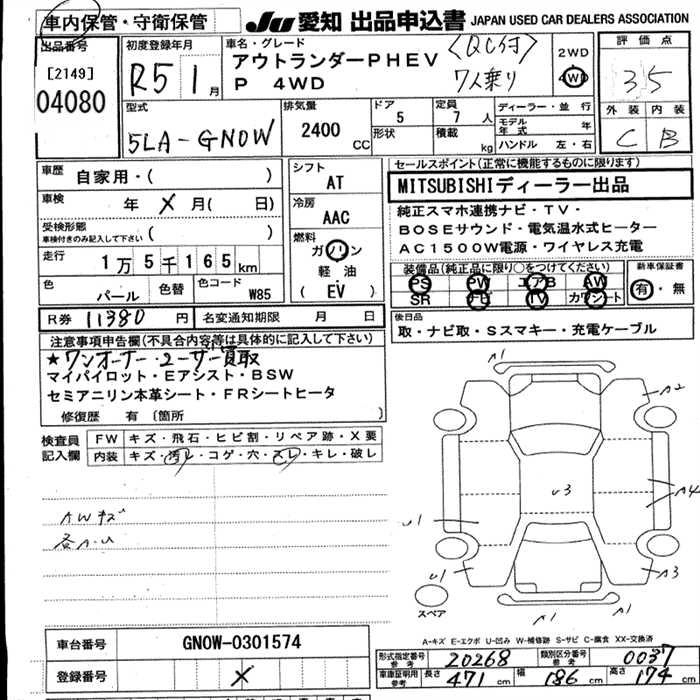 MITSUBISHI OUTLANDER PHEV 2023 г., лот № 4080
