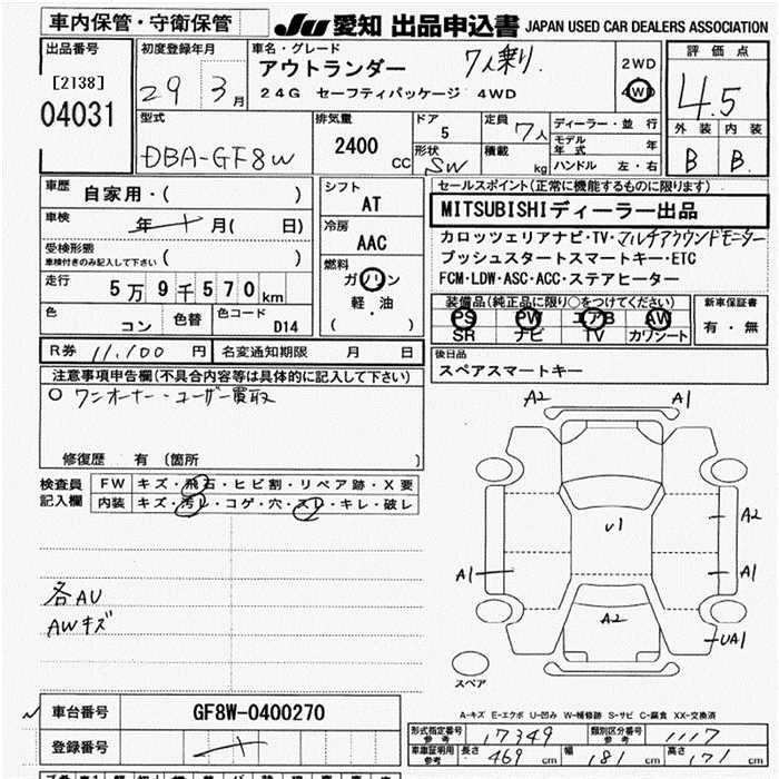 MITSUBISHI OUTLANDER 2017 г., лот № 4031