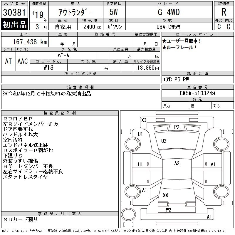 Год выпуска2007 Пробег 167 000 км КузовCW5W КомплектацияG 4WD