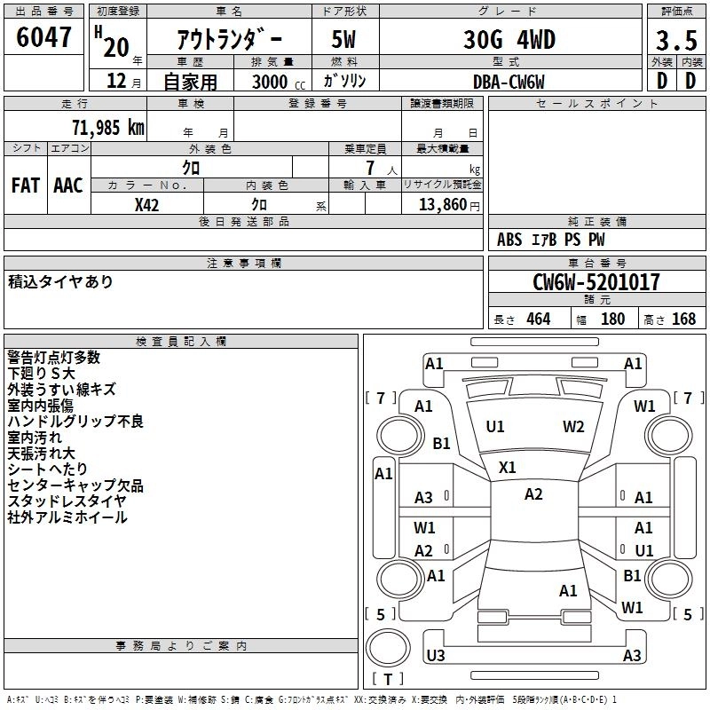 MITSUBISHI OUTLANDER 2008 г., лот № 6047