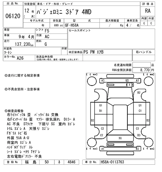 MITSUBISHI PAJERO MINI 2000 г., лот № 6120