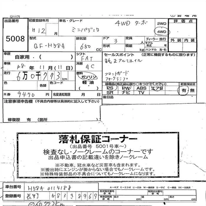 Год выпуска2000 Пробег 61 000 км КузовH58A Комплектация4WD