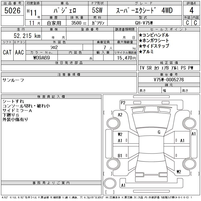 Год выпуска1999 Пробег 52 000 км КузовV75W Комплектация SUPER EXCEED 4WD