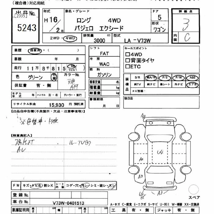 Год выпуска2004 Пробег 118 000 км КузовV73W Комплектация4WD LONG EXCEED