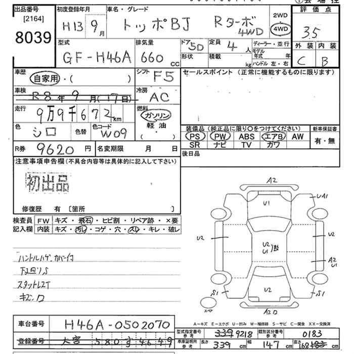 Год выпуска2001 Пробег 100 000 км КузовH46A Комплектация4WD R TURBO