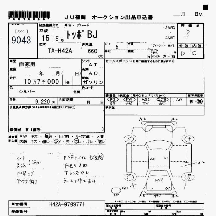 Статус не продан Лот 9043 Аукцион JU Fukuoka Дата аукциона 23.01.2026