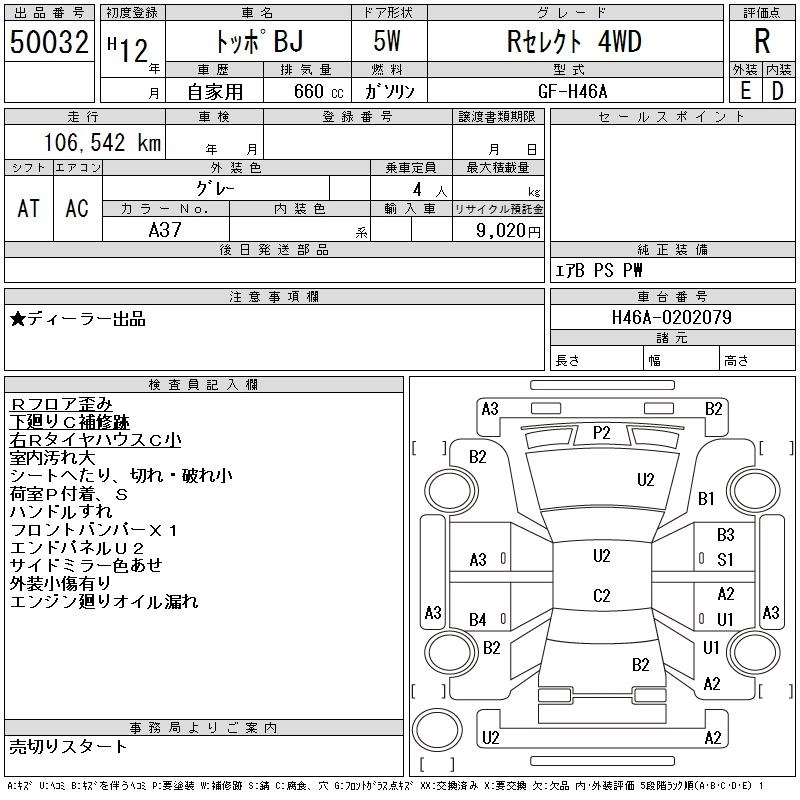 Год выпуска2000 Пробег 107 000 км КузовH46A КомплектацияR SELECT 4WD