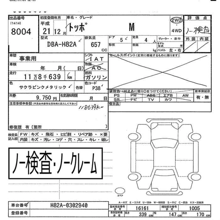 Год выпуска2009 Пробег 119 000 км КузовDBA-H82A КомплектацияM 2WD