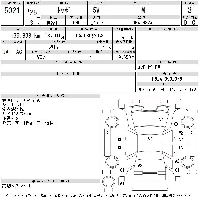 MITSUBISHI TOPPO 2013 г., лот № 5021
