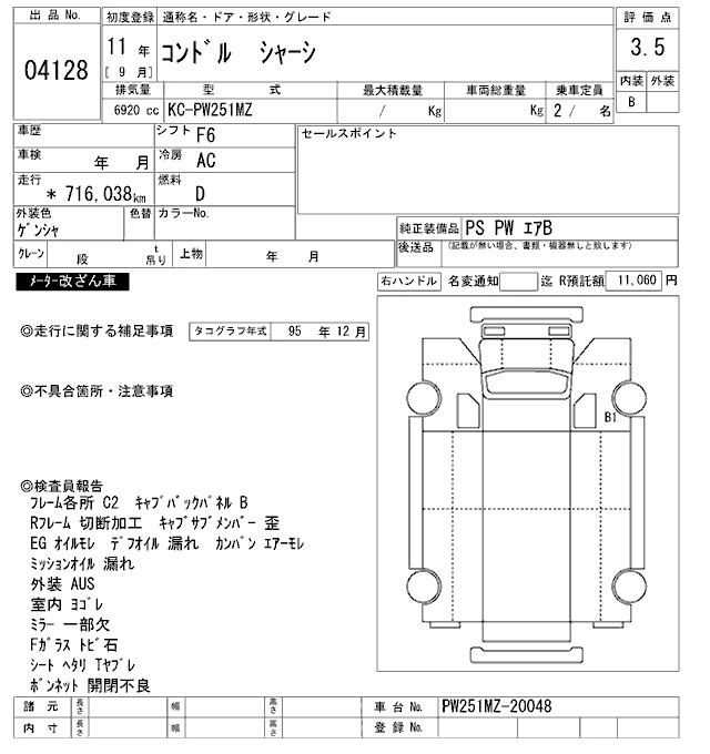 Год выпуска1999 Пробег 716 000 км КузовPW251MZ Комплектация CHASSIS