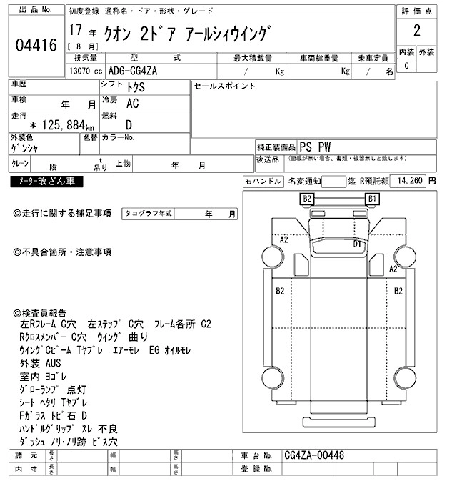 Статус выставлен на аукцион Лот 4416 Аукцион ARAI Oyama VT Дата аукциона 24.01.2026