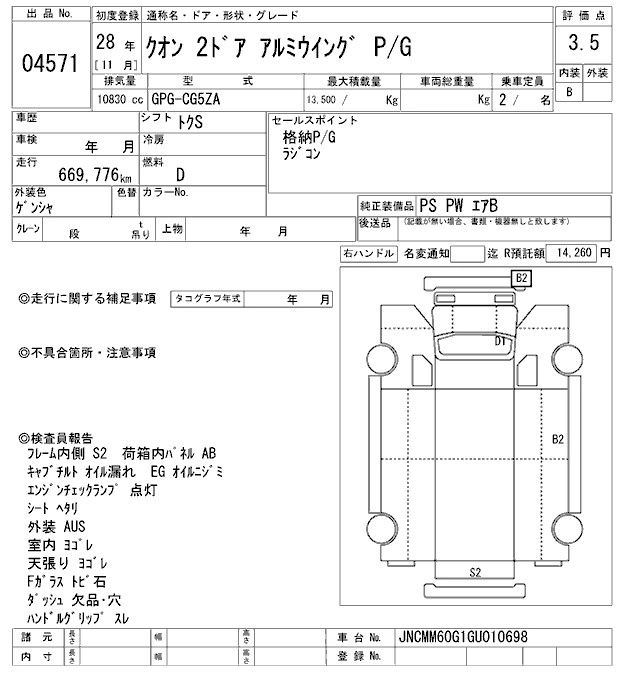Год выпуска2016 Пробег 670 000 км КузовCG5ZA Комплектация ALUMINIUM WING
