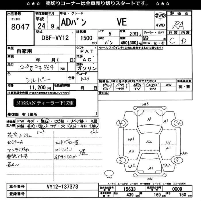 NISSAN AD VAN 2012 г., лот № 8047