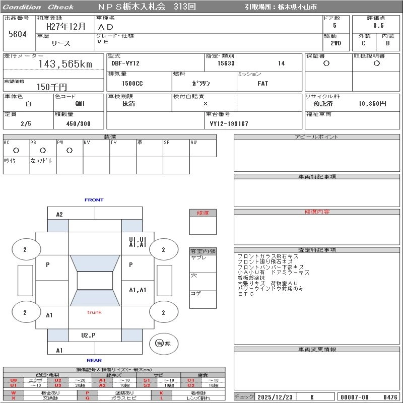 Статус выставлен на аукцион Лот 5604 Аукцион NPS Tochigi Дата аукциона 27.01.2026