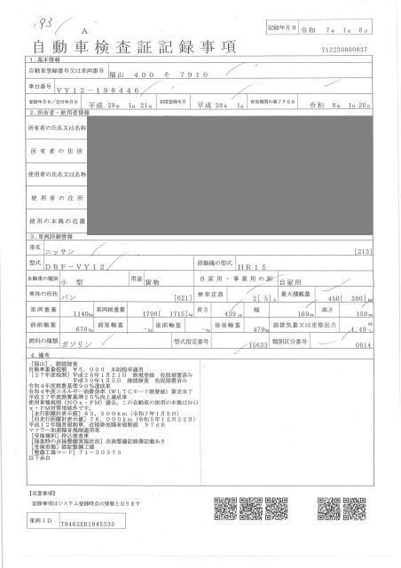 NISSAN AD 2016 г., лот № 193