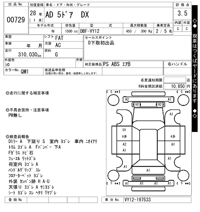 NISSAN AD 2016 г., лот № 729