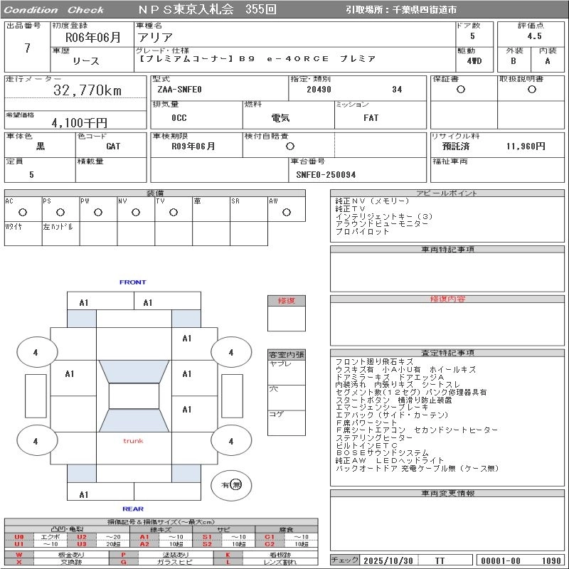 Год выпуска2024 Пробег 33 000 км КузовSNFE0 Комплектация[ PREMIUM CORNER ]B9 E-4ORCE/ PREMIUM