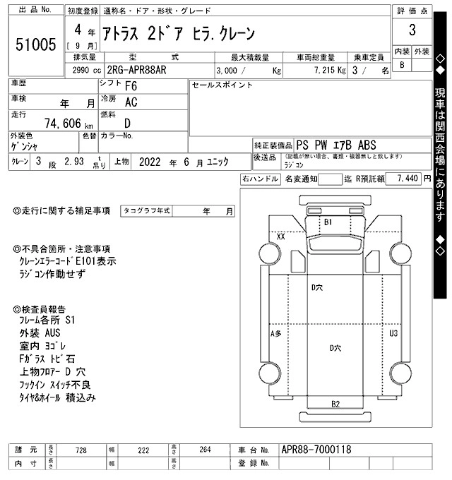 Год выпуска2022 Пробег 75 000 км КузовAPR88AR Комплектация COMMON. CRANE