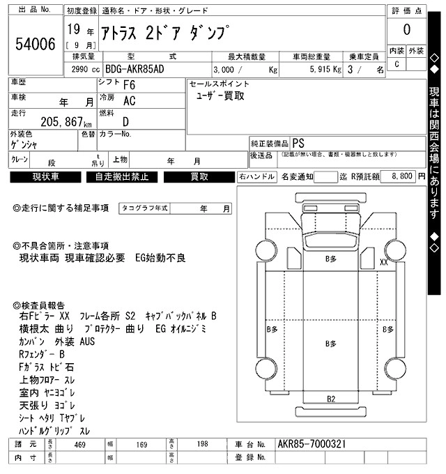 Год выпуска2007 Пробег 206 000 км КузовAKR85AD Комплектация DUMP