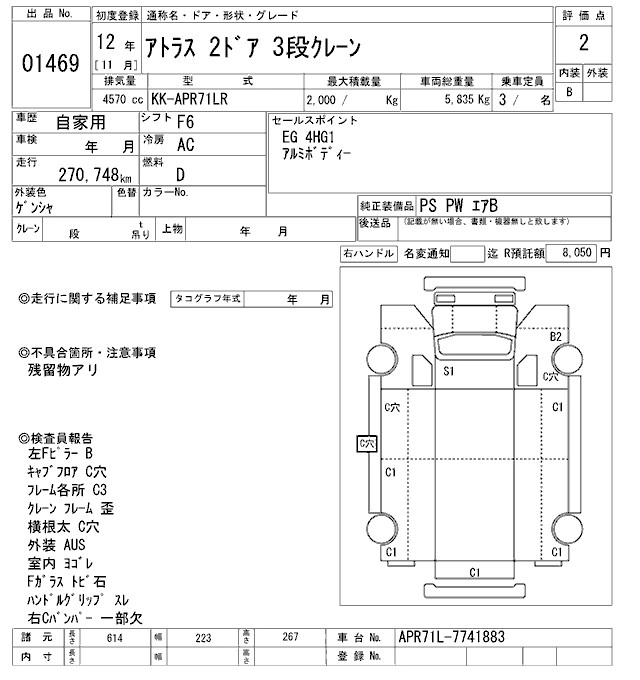 Год выпуска2000 Пробег 271 000 км КузовAPR71LR Комплектация COMMON. CRANE 3 -STEP