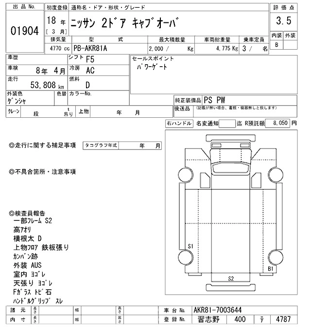Статус выставлен на аукцион Лот 1904 Аукцион ARAI Oyama VT Дата аукциона 24.01.2026