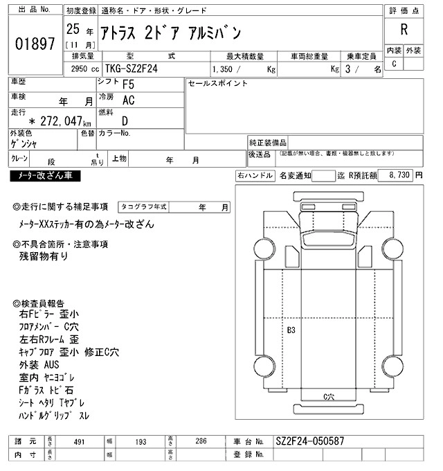 Год выпуска2013 Пробег 272 000 км КузовSZ2F24 Комплектация ALUMINUM VAN